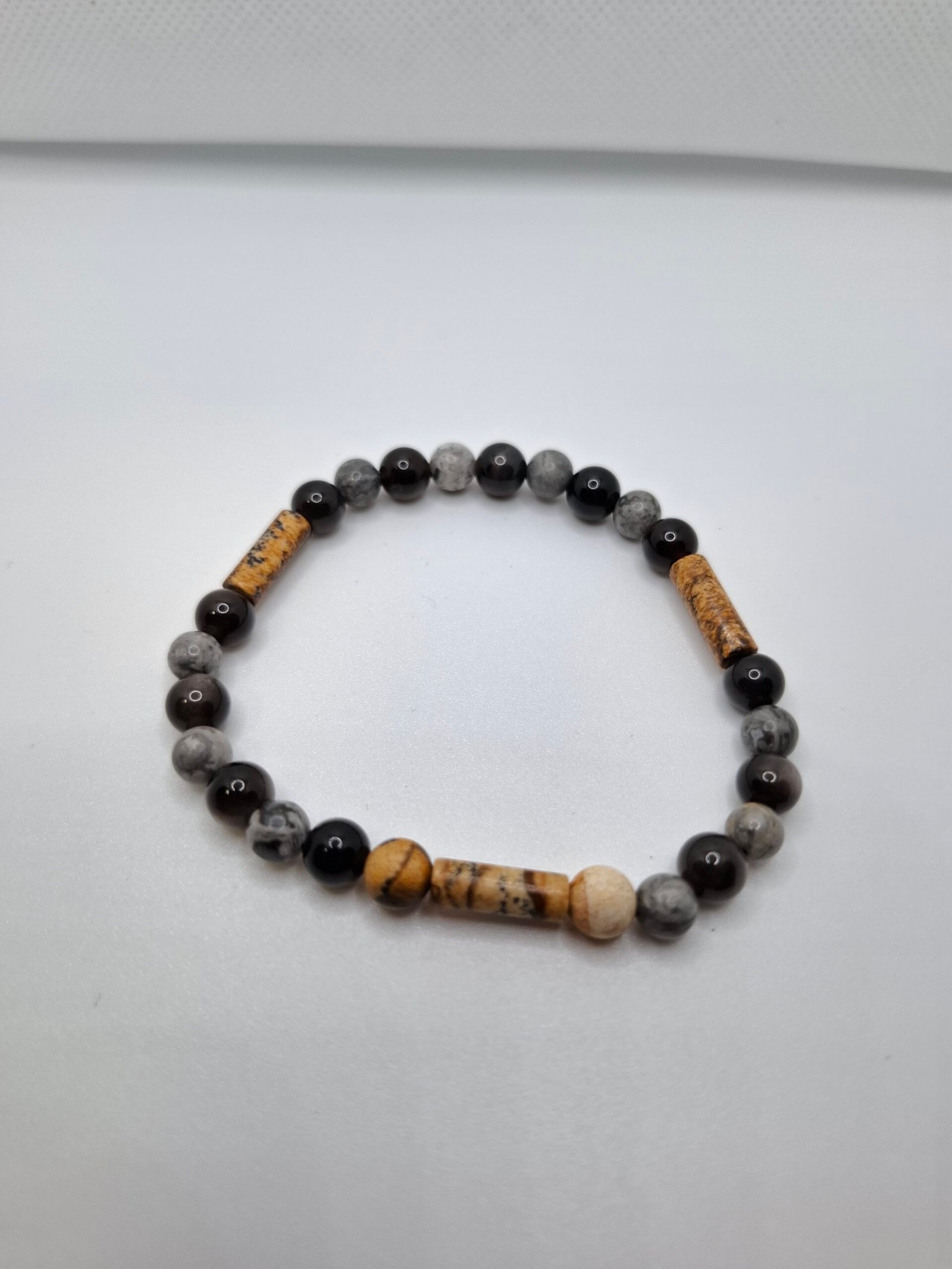 יחד האבנים יוצרות צמיד שמקרקע, מחזק ומזכיר ללכת בעולם ביציבות – מחובר לאדמה ולכוח הפנימי.