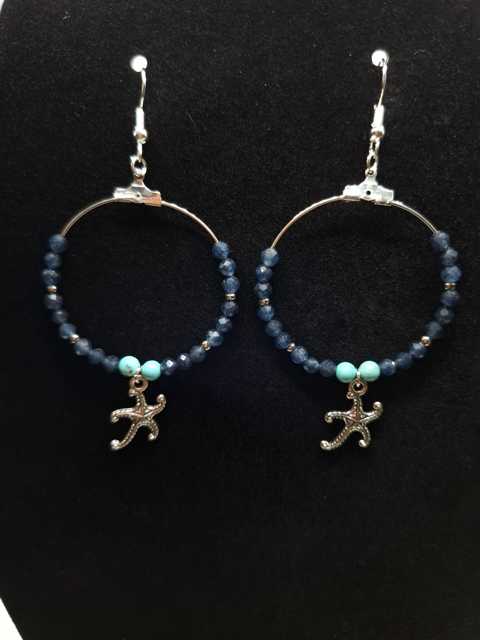 עגילים המשלבים טורקיז וספיר לאיזון, חופש ובהירות פנימית.