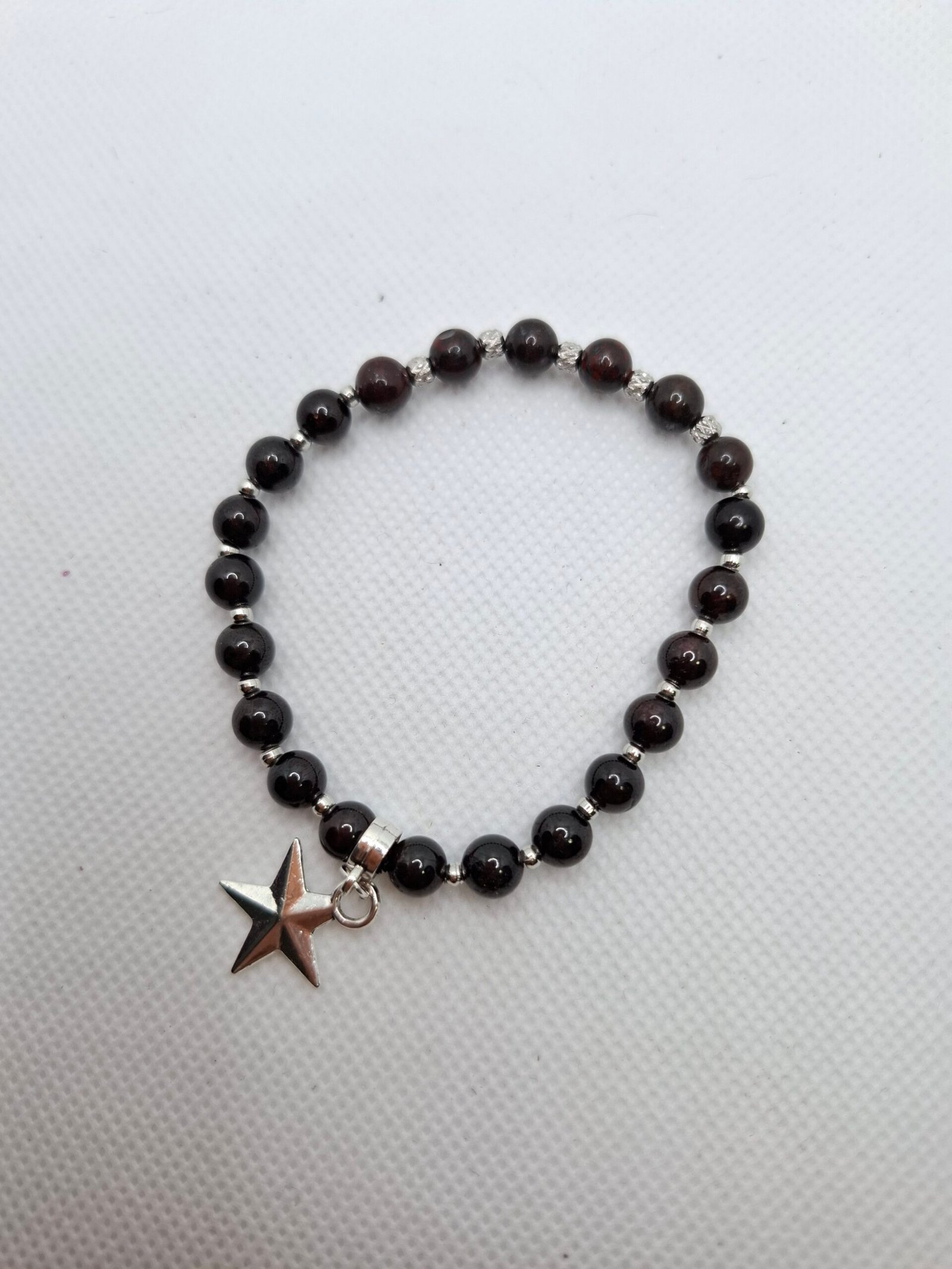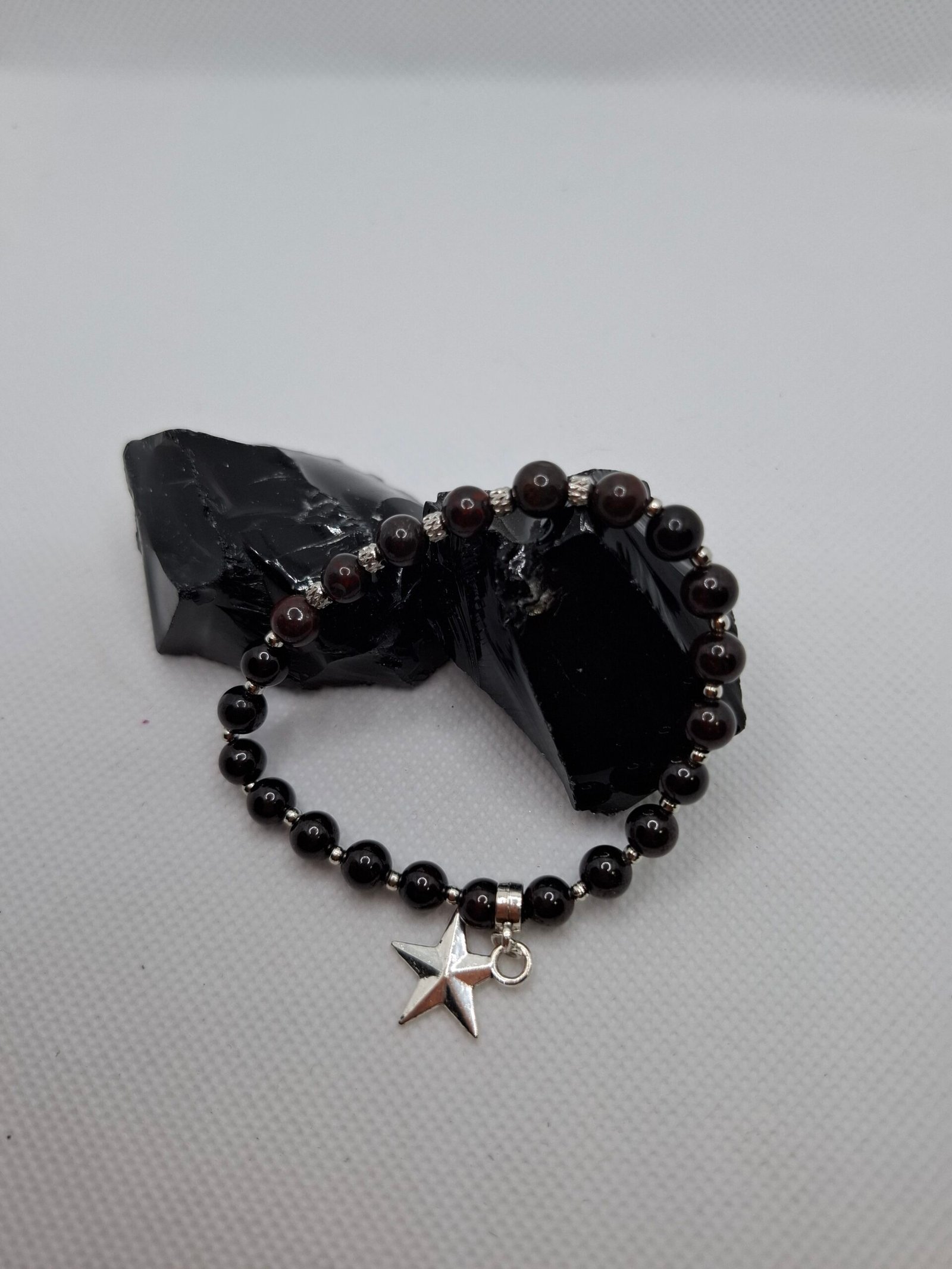 צמיד גרנט ובלדסטון עם תליון כוכב – שילוב של עומק, אומץ ואור פנימי.