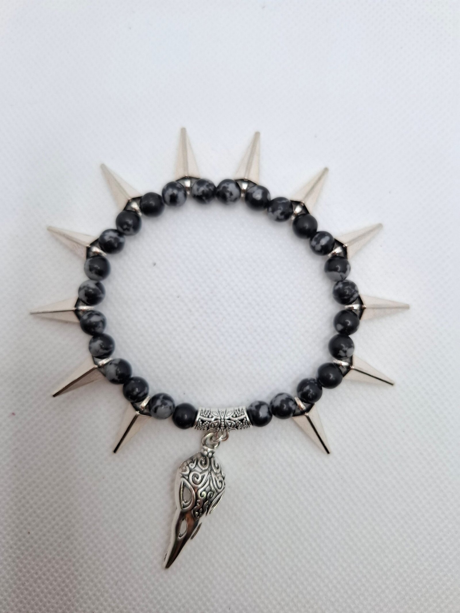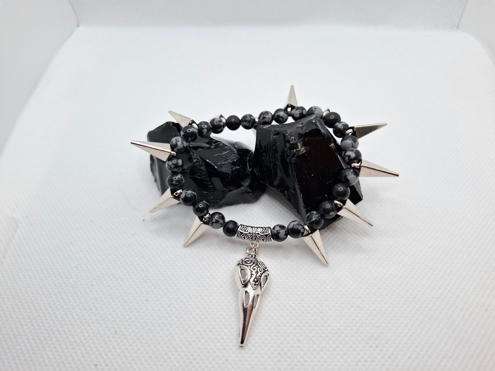 צמיד אובסידיאן סנופליק עם קוצים ומתלה כנף – שילוב של הגנה, חדות ונוכחות.