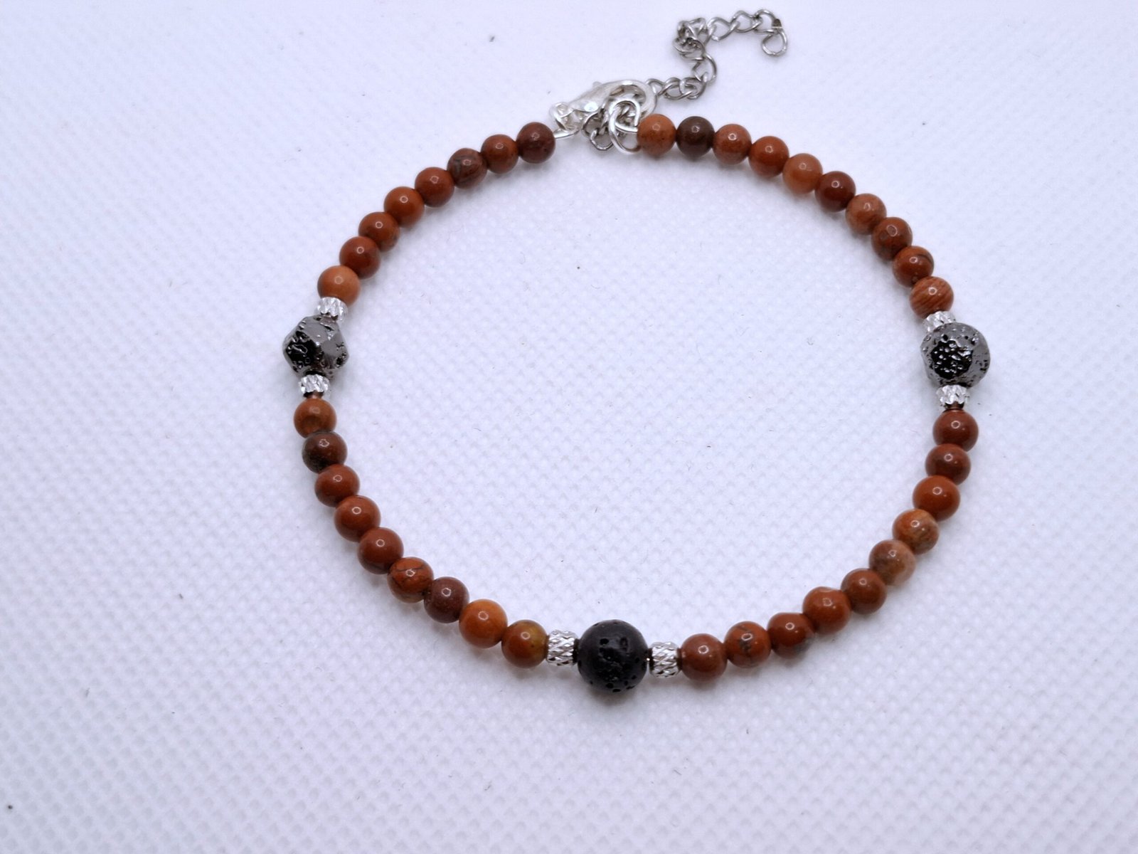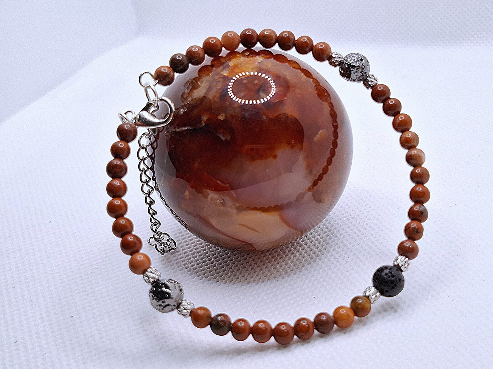 אבן הלבה מקרקעת, משחררת מתחים ומחזקת חיבור לאדמה, בעוד ג’ספר אדום מעורר חיוניות, אומץ ודחף לפעולה.