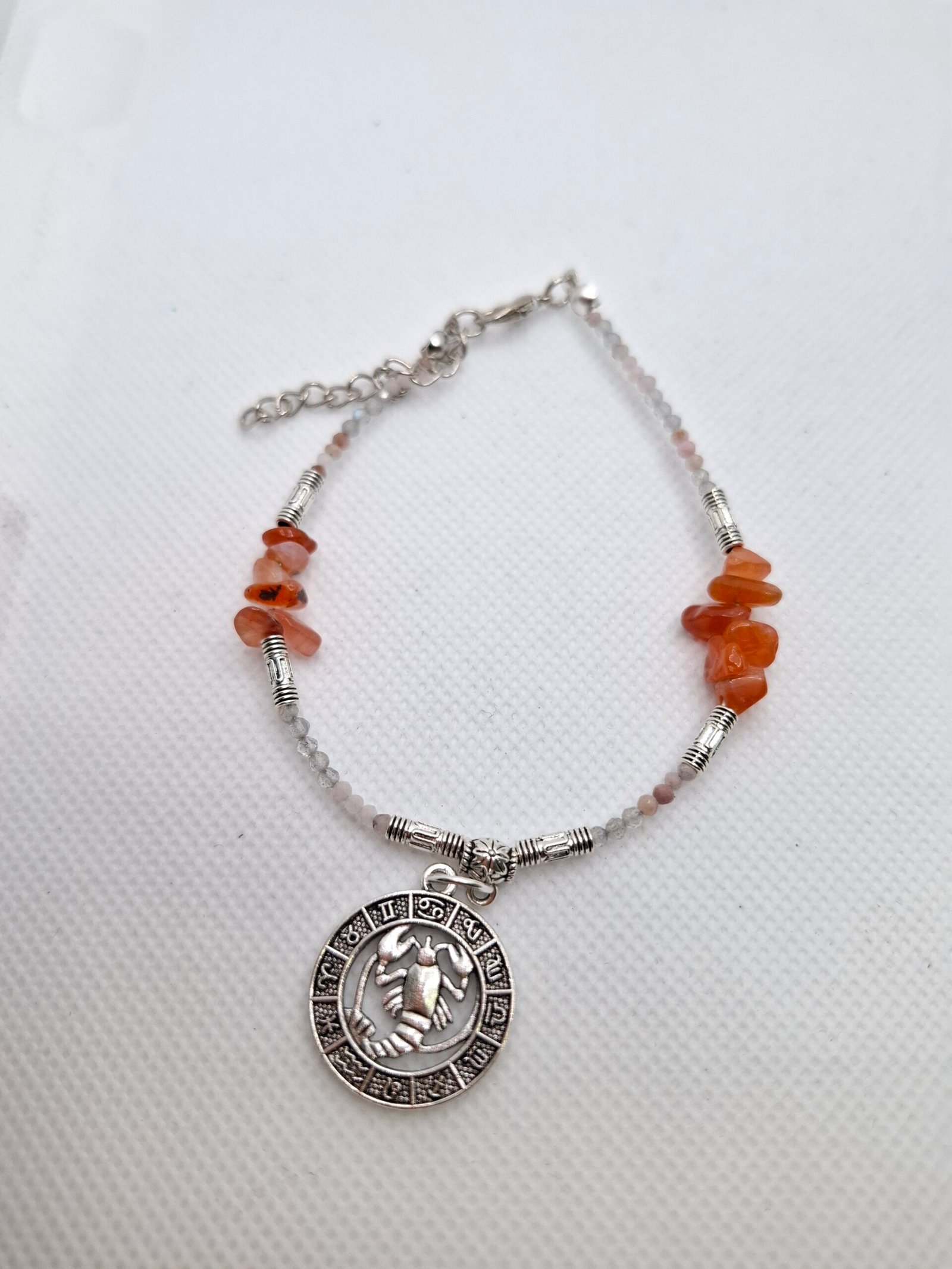 צמיד קובי נוצר סביב תליון מזל סרטן –סמל של עומק, טרנספורמציה ועוצמה שקטה.