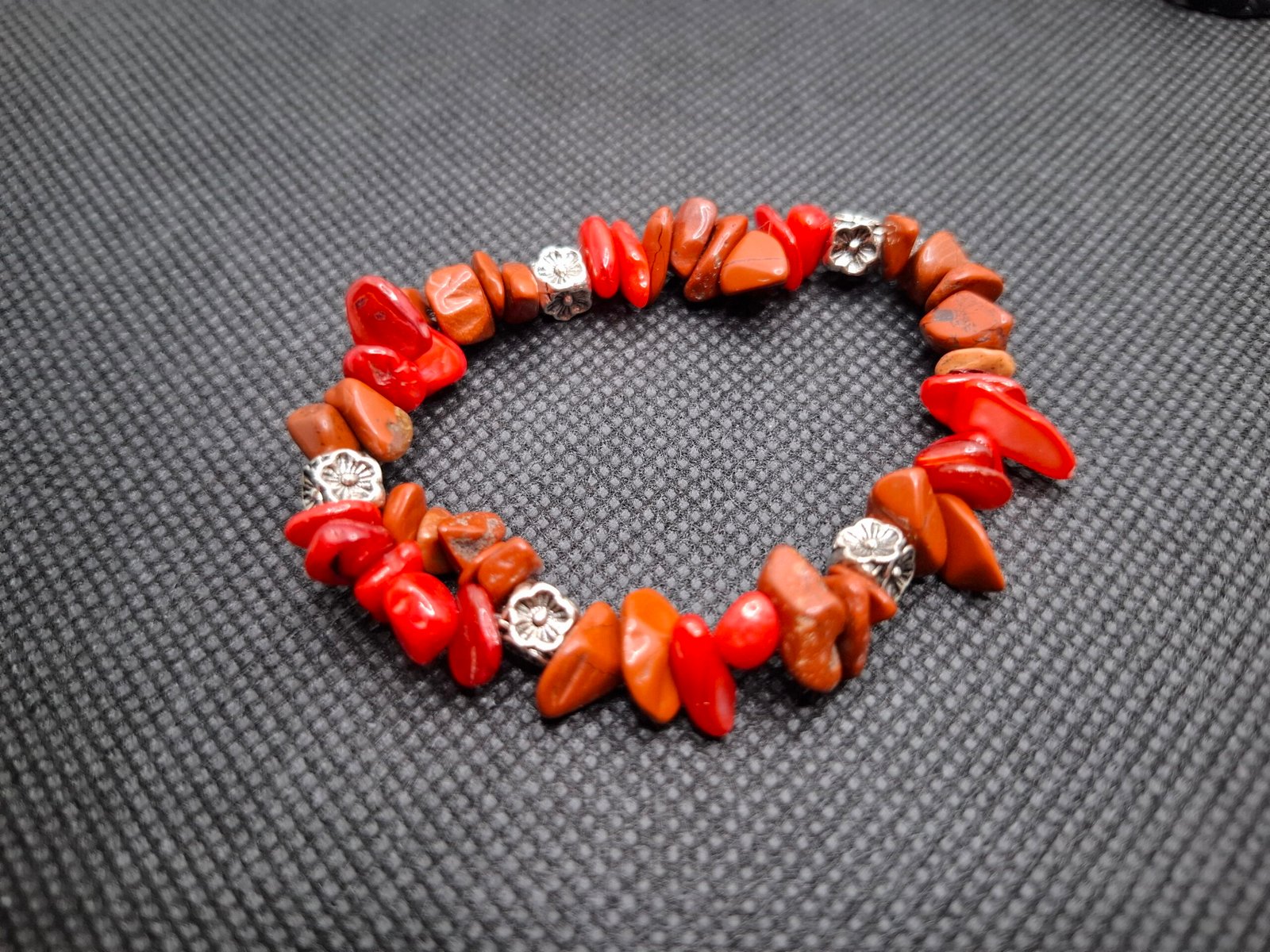 צמיד רוני משלב קורל אדום וג׳ספר אדום – חיבור של אש, חיים ותעוזה.