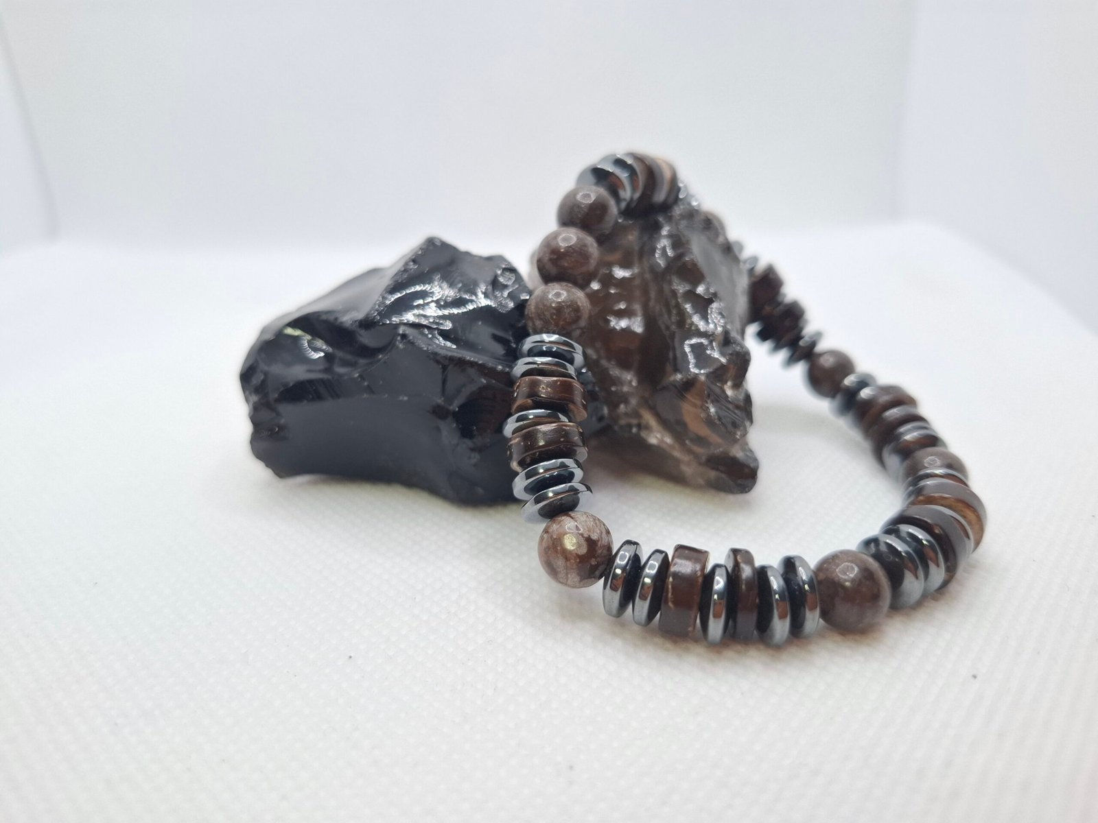 אבן: אובסידיאן מהגוני, המטייט וחרוזי עץ
