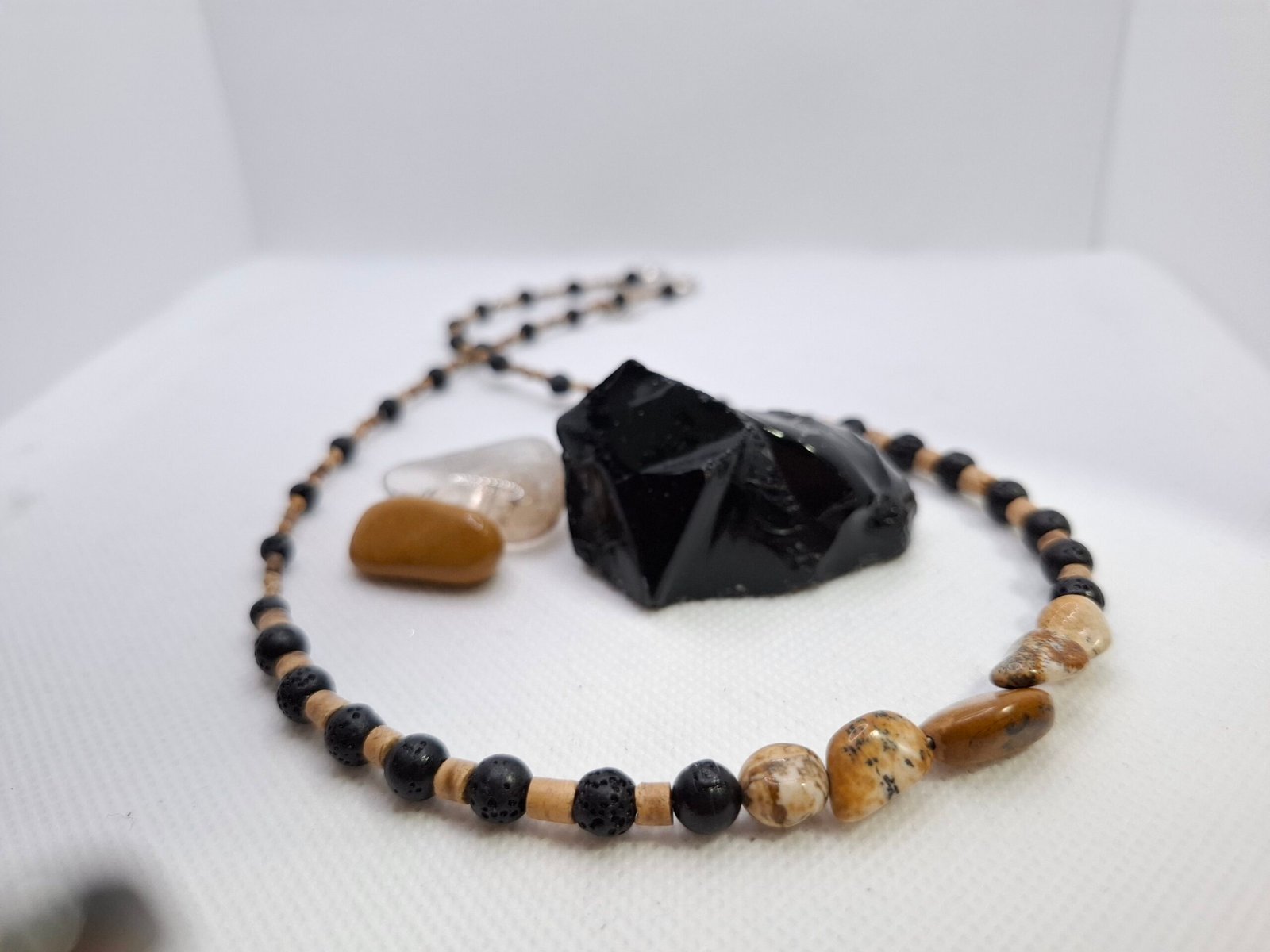 אבן: ג’ספר פיקצ'ר, אובסידיאן ואבן לבה+ חרוזי עץ