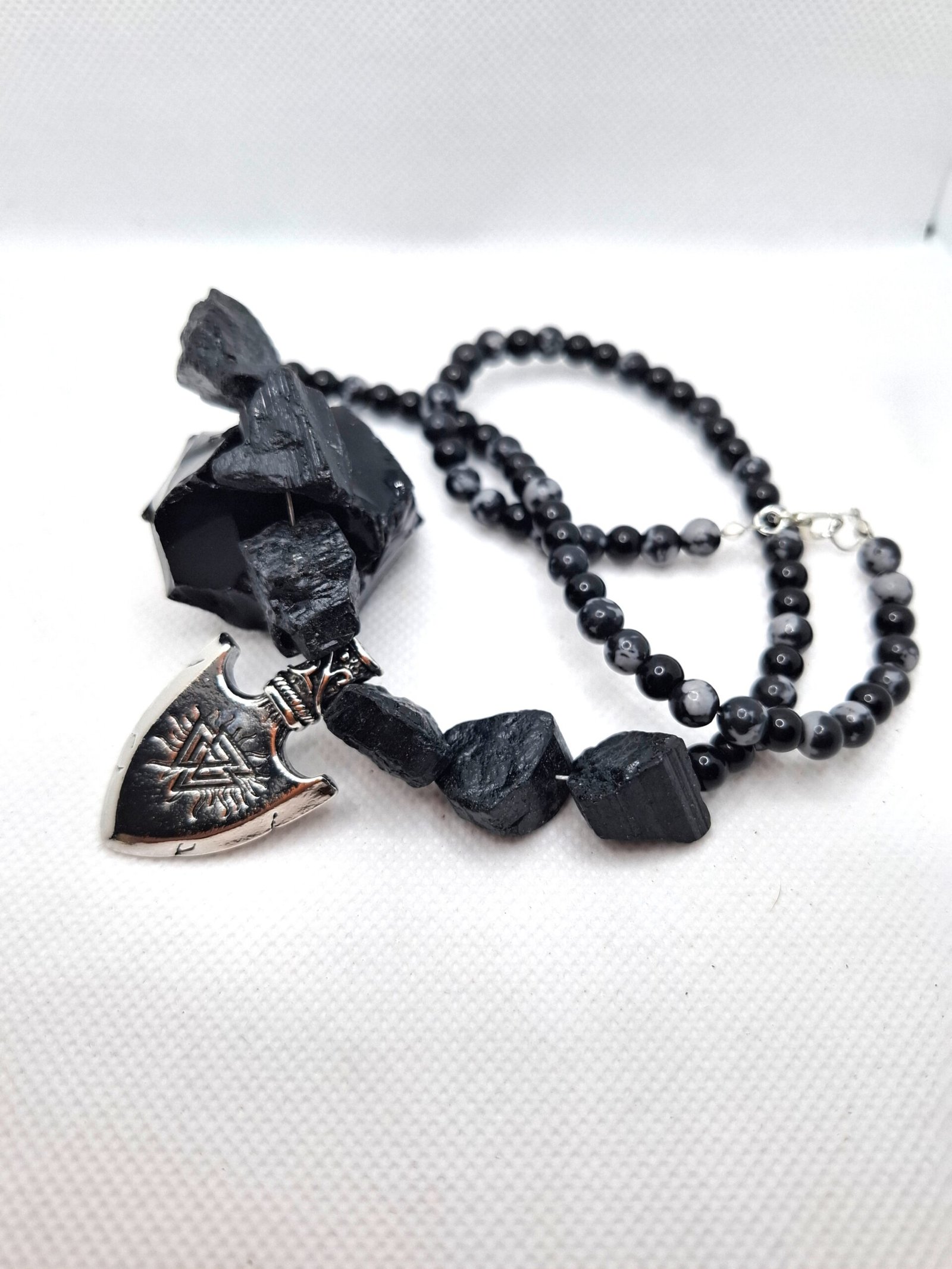 שילוב של אובסידיאן שחור, אובסידיאן סנופלייק ו־טורמלין שחור יוצר קמע של גבול ברור, ניקוי עמוק ועוצמה שקטה.