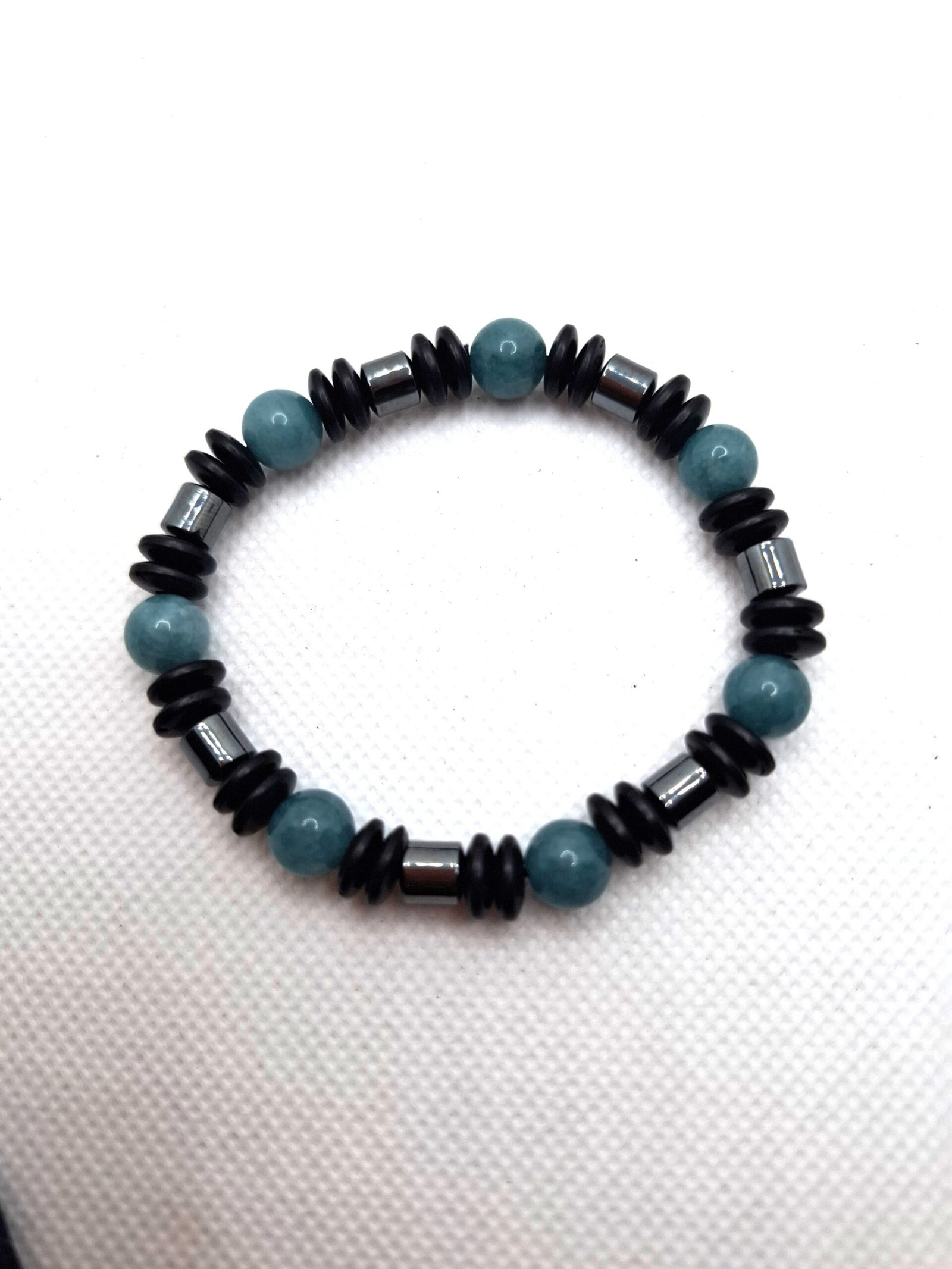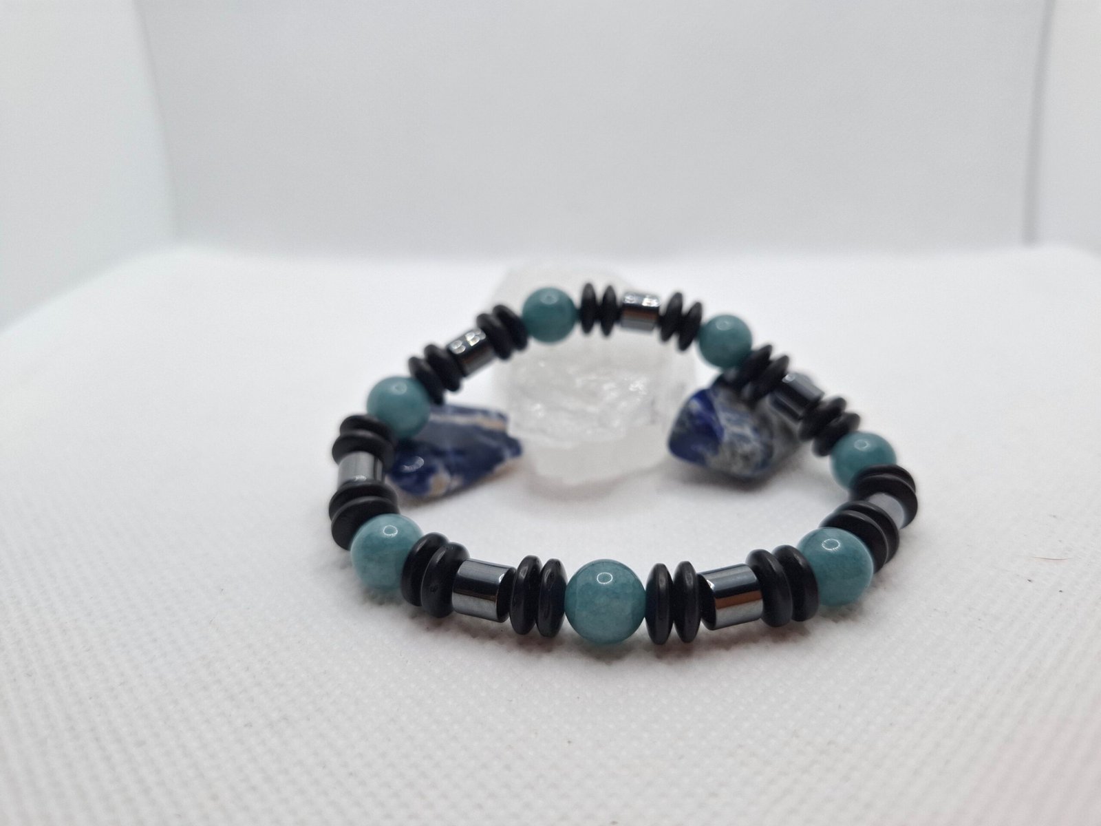 צמיד מאבני אקוומרין, המטייט וחרוזי עץ – חיבור מאוזן בין מים, אדמה ומתכת.