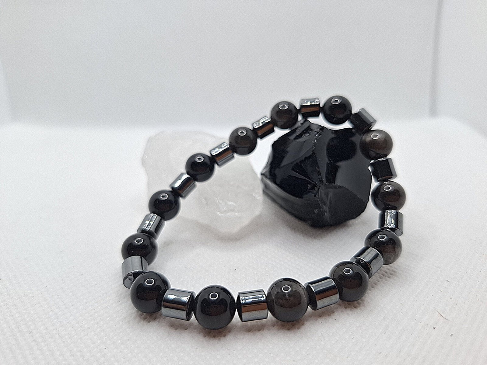צמיד מאבני אובסידיאן והמטייט – שילוב של הגנה, קרקוע ופוקוס מנטלי.