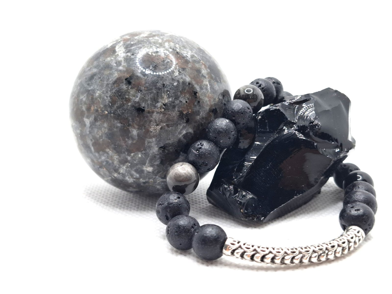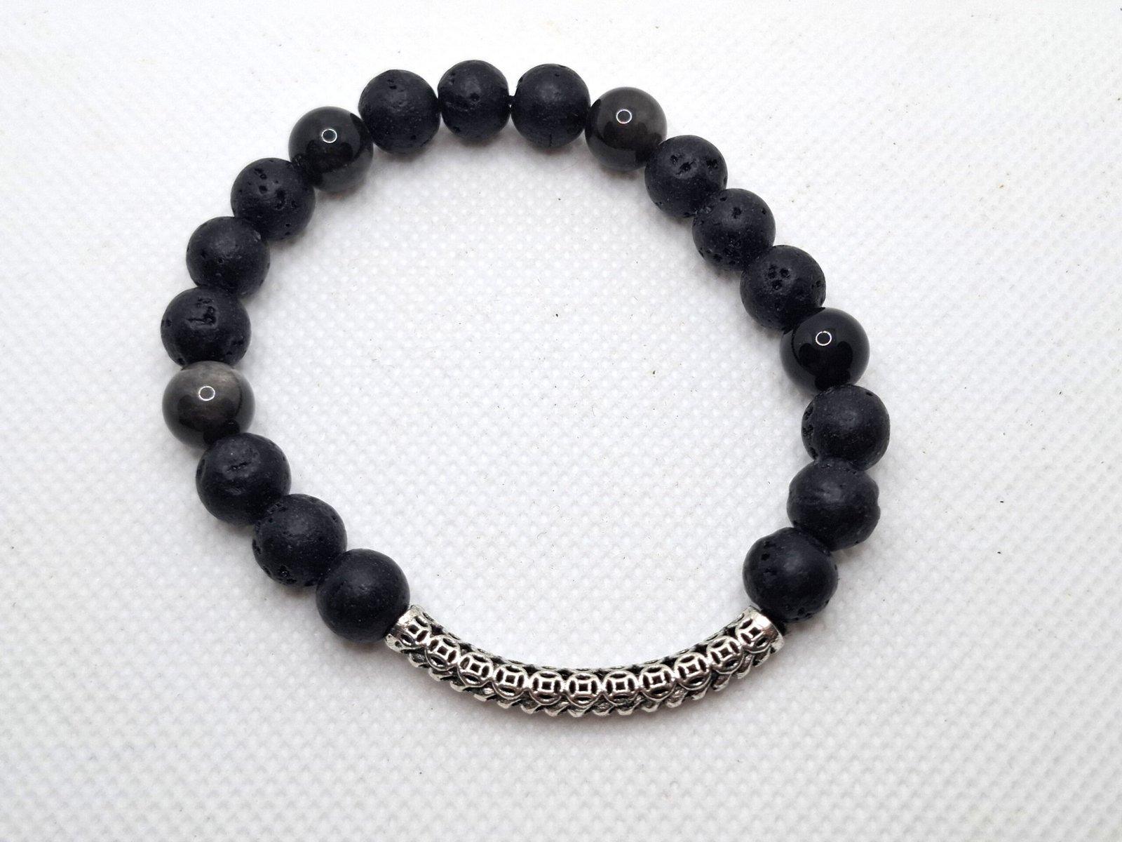 צמיד מאבני אובסידיאן ואבן לבה טבעיות – שילוב של הגנה, קרקוע ועוצמה פנימית.