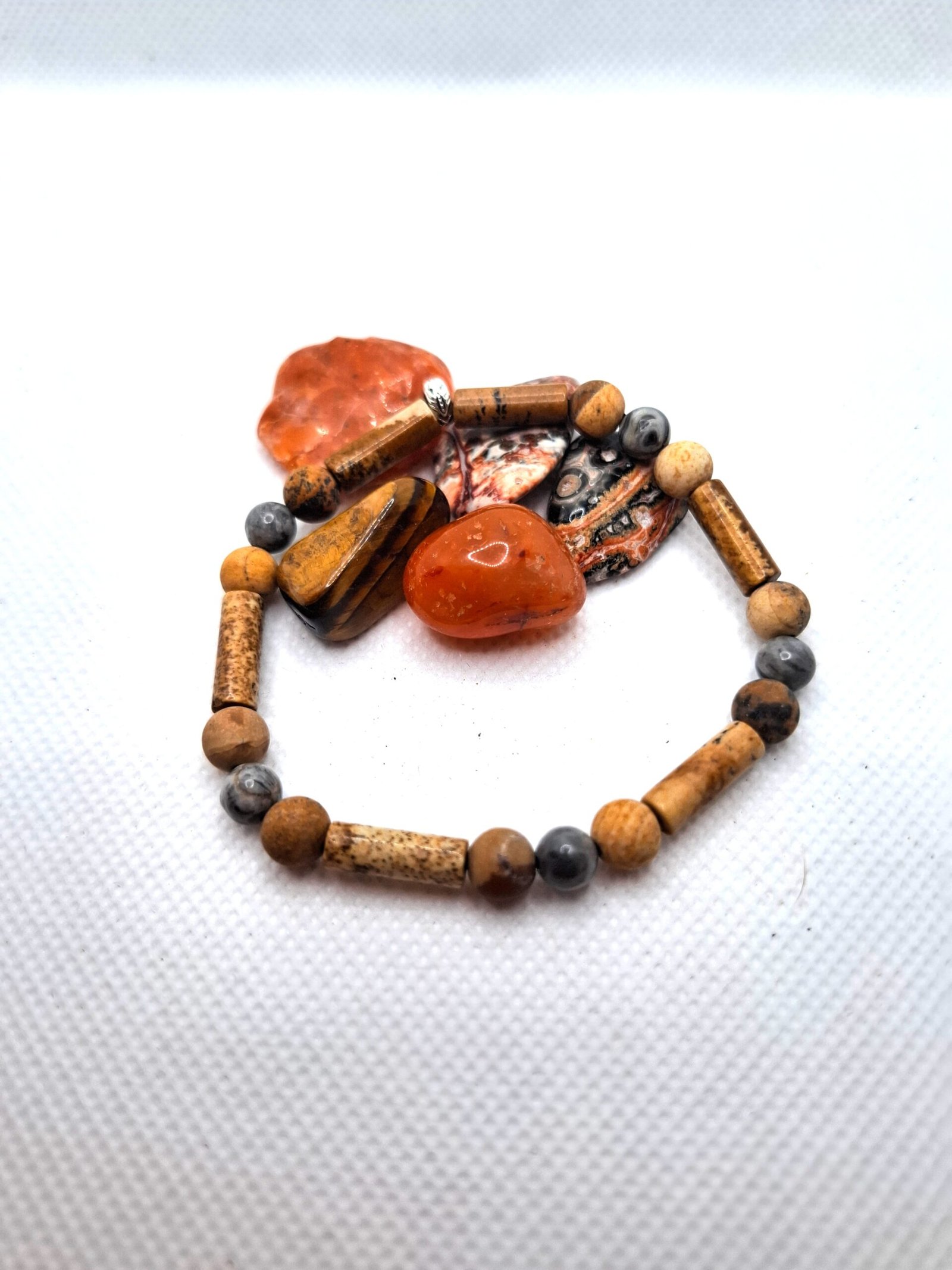 צמיד מאבני ג׳ספר פיקסו וג׳ספר פיקצ׳ר טבעיות – אבנים שמספרות סיפור של קרקוע, התבוננות ויציבות פנימית.